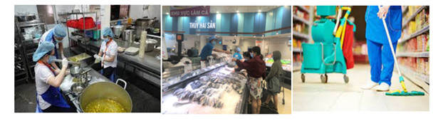 - Fresh food areas: Fresh fish, meat, seafood, etc., are cleaned by employees for packaging or processing.