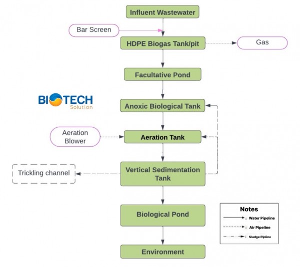 The BOD in the wastewater is treated with the help of aerobic microorganisms. BOD removal efficiency can reach 85-90%.